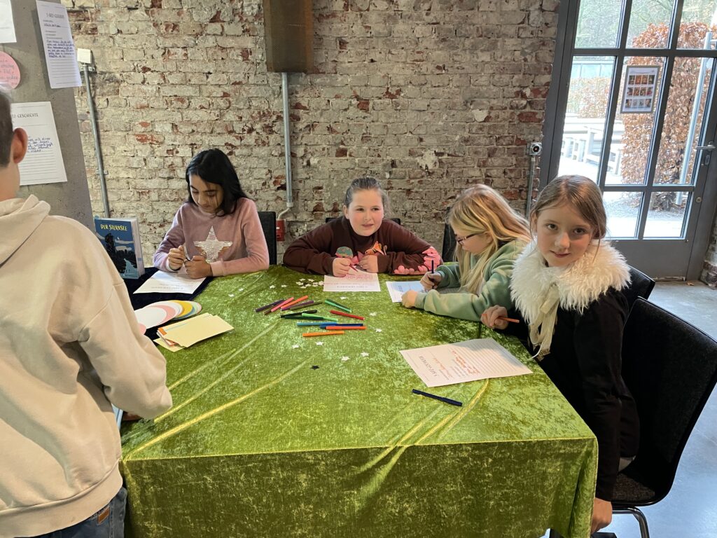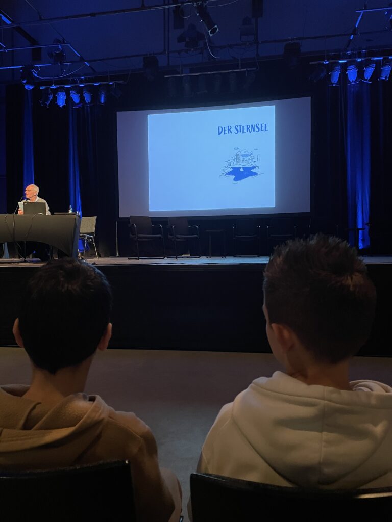 Am Dienstag machten sich unsere vierten Klassen gemeinsam auf den Weg zur Rohrmeisterei, um an einer besonderen Autorenlesung teilzunehmen. In der Woche zuvor hatten die Kinder bereits in Workshops zum Buch „Der Sternsee“ gearbeitet. Gemeinsam mit einer Literaturpädagogin entwickelten sie eigene Ideen und schrieben kleine Geschichten, die sie mit viel Begeisterung gestalteten.