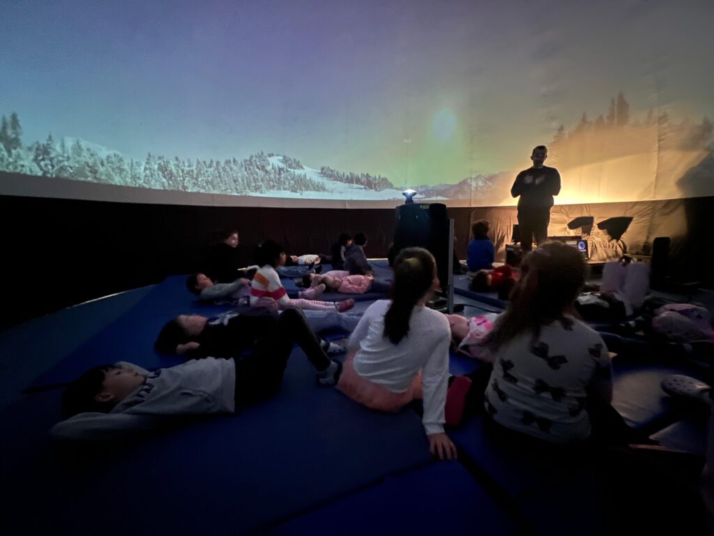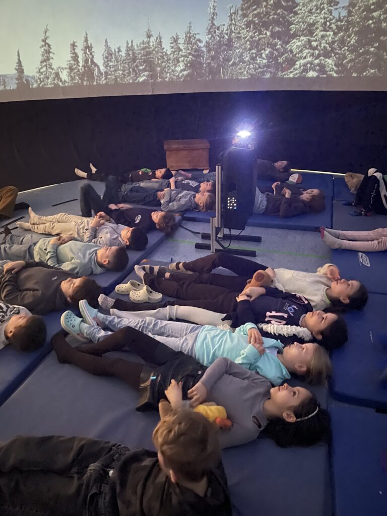 Die Kinder durften in eine beeindruckende Welt eintauchen und begaben sich auf eine spannende Reise durch das Weltall. Sie entdeckten ferne Planeten, funkelnde Sternbilder und geheimnisvolle Galaxien. Dabei lernten sie nicht nur viel über unser Sonnensystem, sondern staunten auch über die unendlichen Weiten des Universums. Für viele war es ein ganz besonderes Erlebnis, den Sternenhimmel so nah und eindrucksvoll zu erleben.