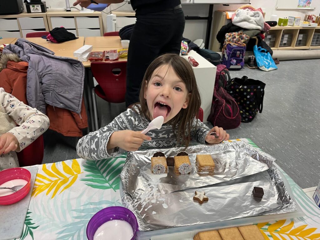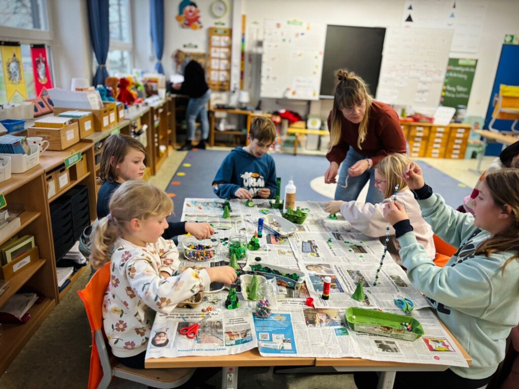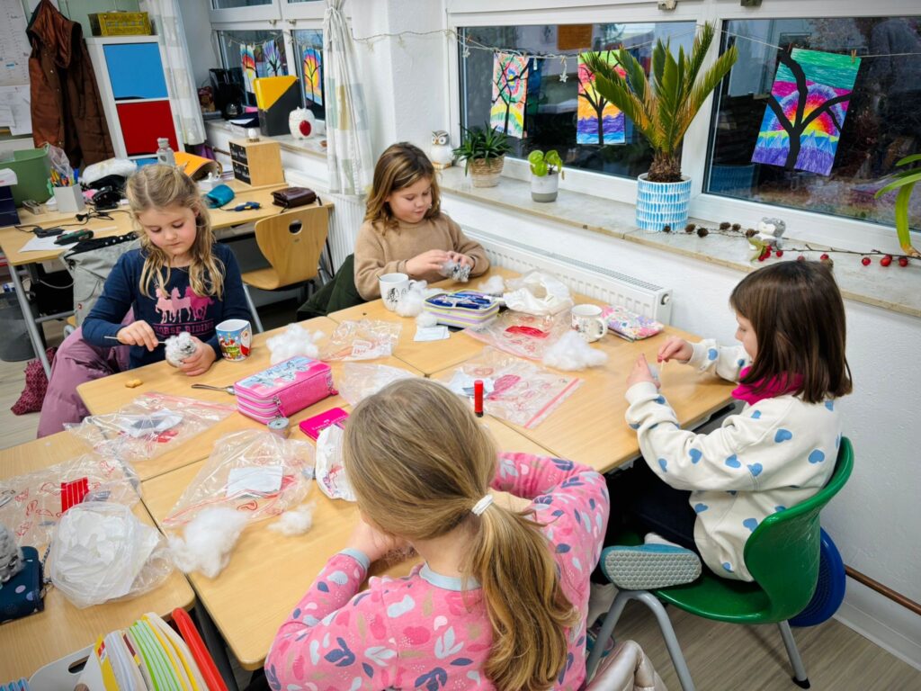 Auch in diesem Jahr fanden an unserer Schule wieder zahlreiche weihnachtliche AGs statt – kreativ, sportlich und stimmungsvoll. An allen Tagen wurde gebastelt, gestaltet, getanzt und gelacht. Die Kinder hatten sichtlich Freude daran, zum Beispiel Lichterhäuser aus Modelliermasse zu formen, Sternengläser zu gestalten oder in der Vorlese-AG in gemütlicher Atmosphäre winterlichen Geschichten zu lauschen. Besonders beliebt waren auch die Kekseisenbahnen, die mit viel Fantasie und noch mehr Zuckerguss gebaut wurden.